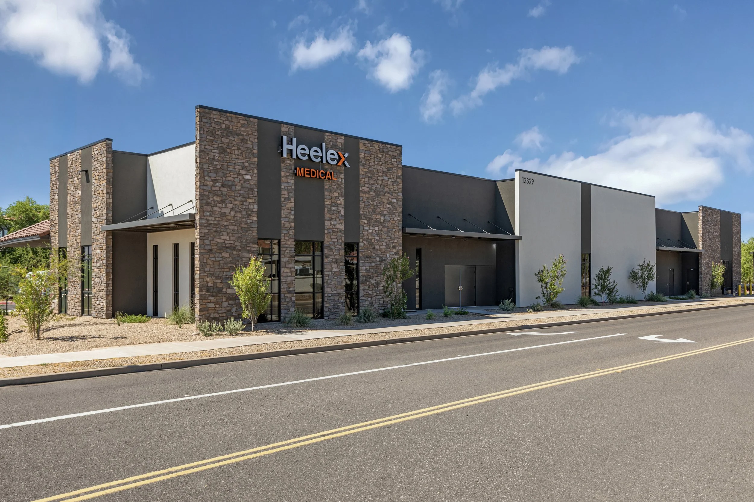 Concluding Phase 2 of the existing Desert Mirage Medical Plaza development, this new ground-up medical office building contains 10,000 SF of shell space that will be demisable for up to 6 future tenants. The building features stone facade elements and clay tile accent roofs that reference the character of the existing three buildings, while adding a modern twist through the use of massing and proportions. Large storefront windows welcome patients from the existing roundabout and new parking lot, and lush landscaping sits within retention basins on the East and West sides of the building, completing the 1.07 acres of site.